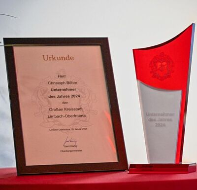 Nach nur 4 Jahren mit unserer Tanzschule am Markt in L-O erhalten wir im Januar 2025 die Auszeichnung der Stadt Limbach-Oberfrohna als "Unternehmer des Jahres 2024".